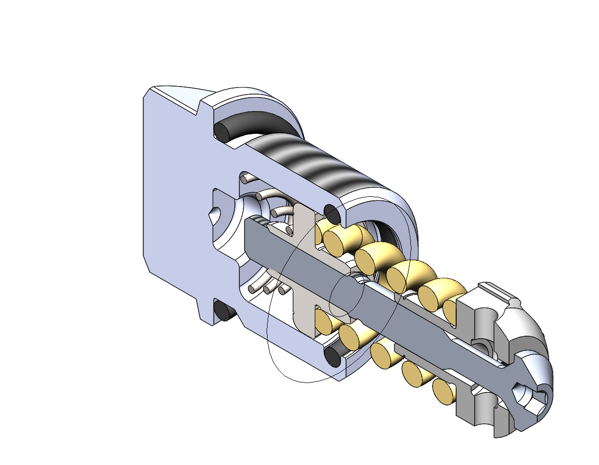 該閥在緊湊式螺紋插裝閥結(jié)合了減震閥和通過止回閥實現(xiàn)補油的典型功能。在壓力下的泄壓功能,它是通過一個側(cè)入式鼻排氣閥完成的,由于智能導流板設(shè)計實現(xiàn)非常低的壓力上升。當壓力在高壓端口(1)達到閥門設(shè)定,閥門啟動打開通往油箱端口(2)。在自由反向液流中 一個非常輕的偏置彈簧允許液流易于從鼻端流通到側(cè)端(2 到1)。高精度加工保證快速響應(yīng)負載變化,有限遲滯和減少內(nèi)部和外部泄漏。 The valve combines in one compact insert cartridge the typical function of shock relief valve and anti-cavitation through the check valve. In the pressure relief function it’s a side-in nose-exhaust valve, with very low pressure rise thanks to the smart deflector design. When the pressure at the high pressure inlet(1) reaches the valve setting, the valve starts to open to tank (2). In the free reverse flow function a very light bias spring allows for ease of flow passage from nose to side (2 to 1). High precision machining guarantees quick response to load changes, limited hysteresis and reduced internal and external leakage.