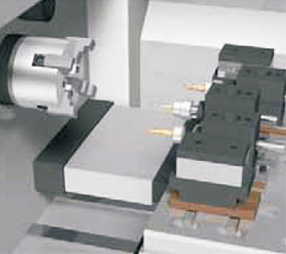 * TMN系列標(biāo)準(zhǔn)配置BMT-45-16T刀塔,最大可以安裝16把不同刀具。多刀具刀塔可設(shè)計(jì)解決復(fù)雜工件加工。