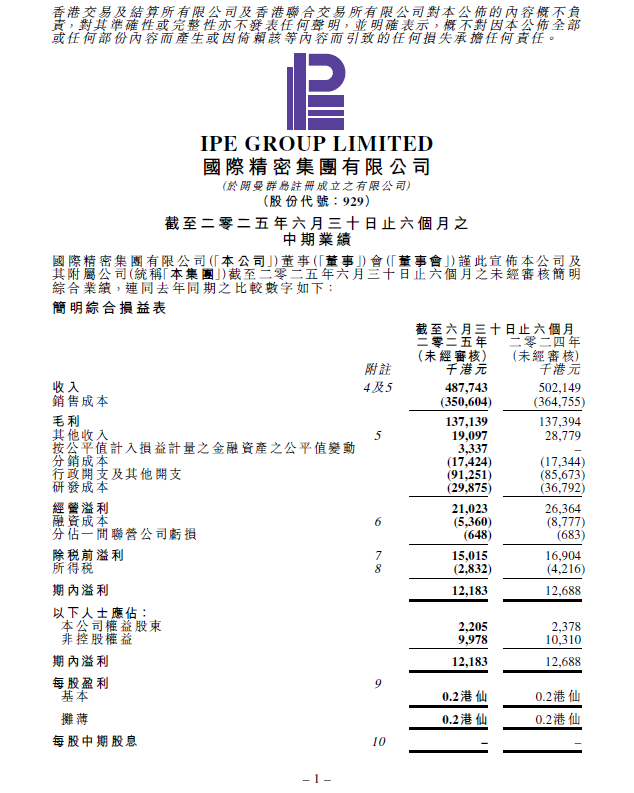 20 2025-08截至二零二五年六月三十日止六個月之中期業(yè)績