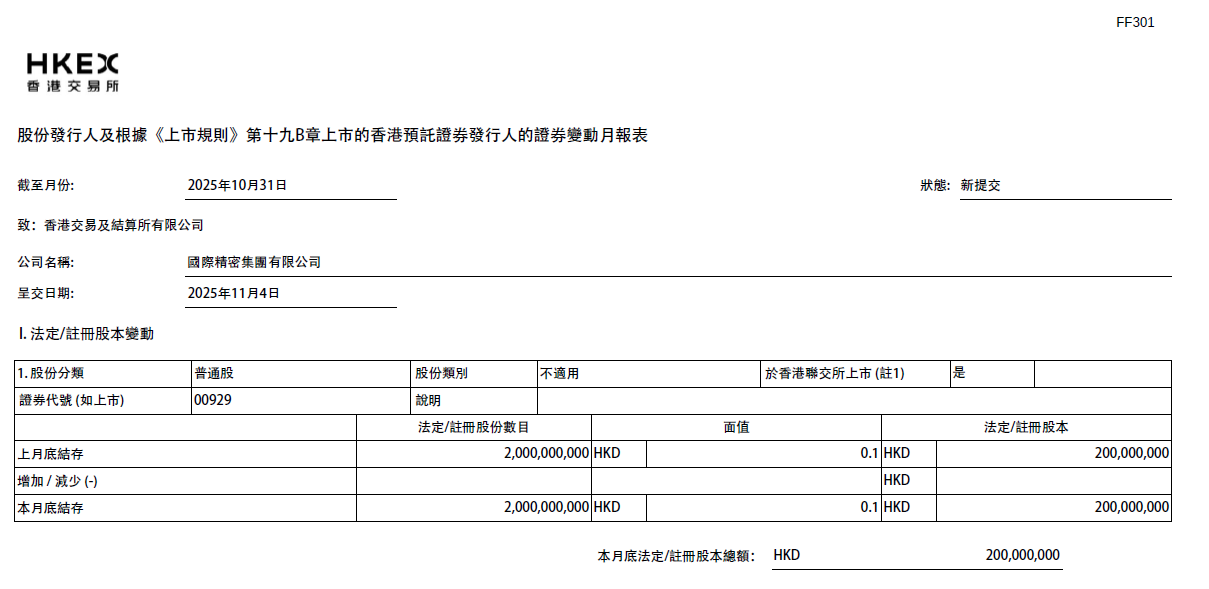 04 2025-11股份發(fā)行人的證券變動月報表截至二零二五年十月三十一日