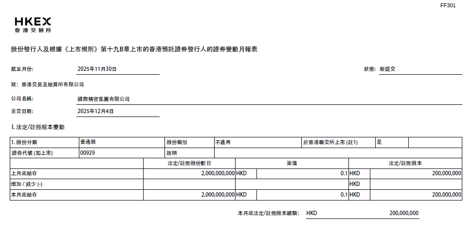 查看詳情 >>股份發(fā)行人的證券變動月報表截至二零二五年十一月三十日.pdf